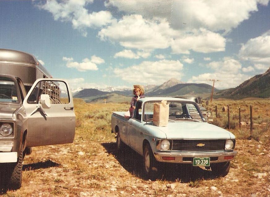 A young Jan Washburn standing on the back of her father, Lee Spann’s truck in Crested Butte. Photo Credit: Jan Washburn